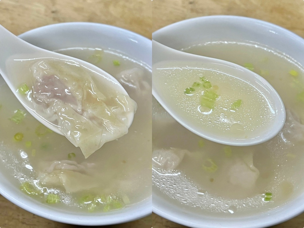 餛飩的肉餡很實在,外皮薄軟好入口,湯頭蠻清澈的,口味不會太重,一口乾麵一口湯品相當滿足