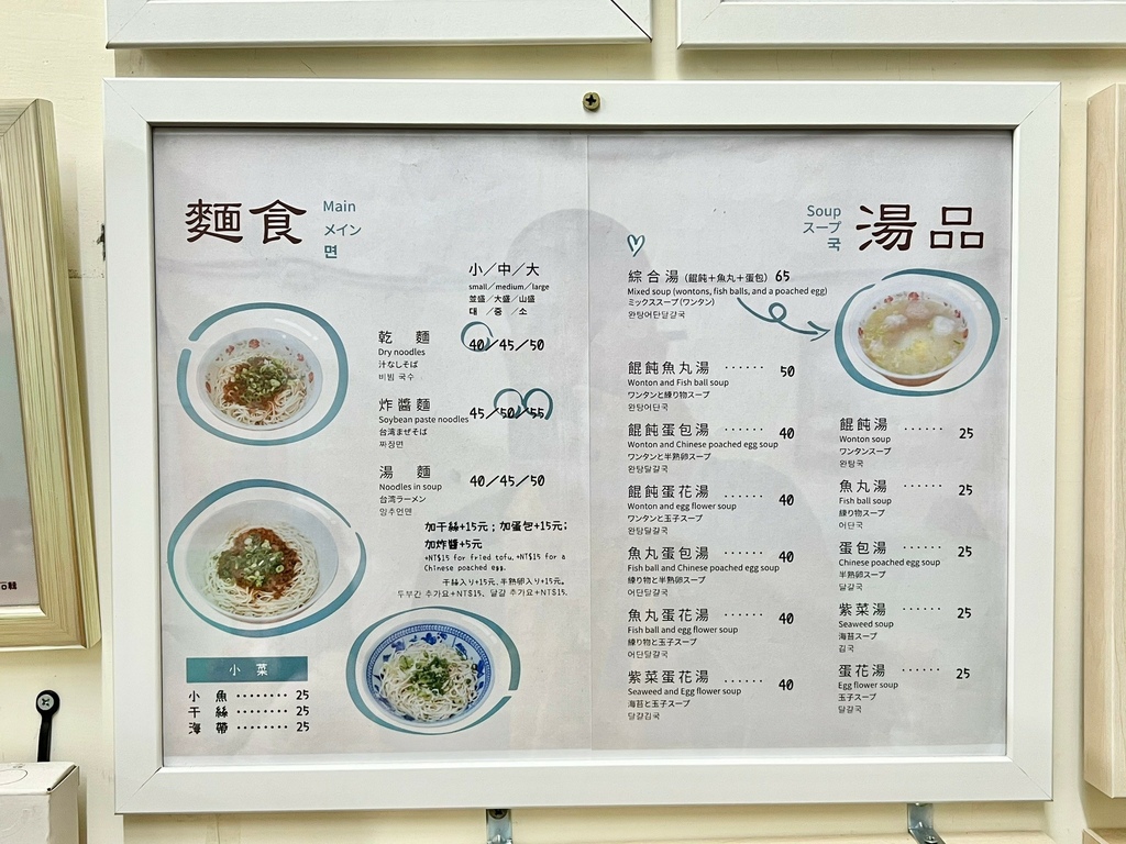 一個麵+一個湯大約一百左右,小菜品項比較少,我個人希望之後有更多樣化的小菜,滷味,搭配麵食更加美味