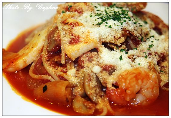 我點的蕃茄蘑菇海鮮義大利麵 所有的義大利麵均一價一百一