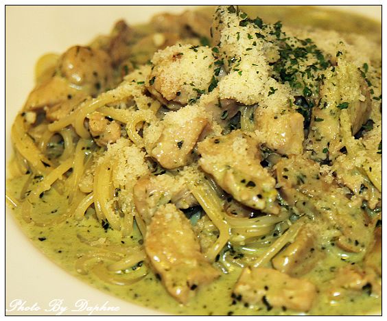 朋友點的是菜單沒有的組合 奶油青醬雞肉義大利麵