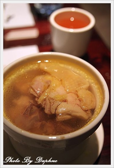 肉質軟透細膩 湯頭充滿雞汁味 卻不會讓人感到油膩與過腥 只有淡淡點出帶過