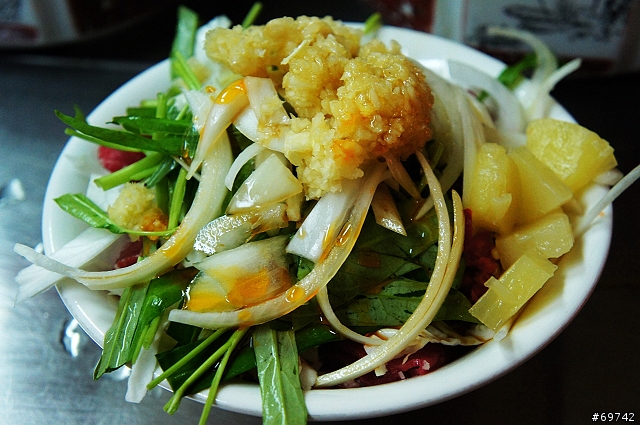 1.以唐宮這樣的價位,光是蒙古烤肉,我就覺得相當實在了,更別說還有相當道地的東北酸菜白肉鍋。蒙古烤肉的肉質也算是平均之上,冷凍肉類保存相當完整,切片厚度也算合宜,至於烤出來的肉好不好吃??咦 ~ 成敗不在大廚喲,在於你自己是否調配得當 (笑)