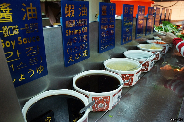 多樣化的醬料,因為各國旅客眾多,日文、韓文、英文都有耶!
