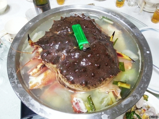 前二年意外在01上看到進口超大帝王蟹文章,某次啾了幾個朋友光顧後就愛上這家外表不起眼,但深藏不露的海產店,平均二,三個月就要來補充一下膽固醇!今晚老闆的水族箱滿滿滿...,點了一隻11斤重的帝王蟹(鱈場蟹),3斤多重的北海道毛蟹,英國黑牛,烤軟絲...,最後還煮了一大鍋黃金蟹肉粥加上餐後日本進口大葡萄~真是大滿足啊!