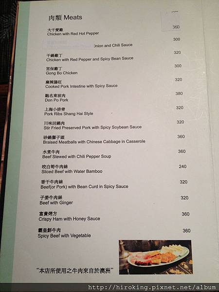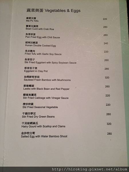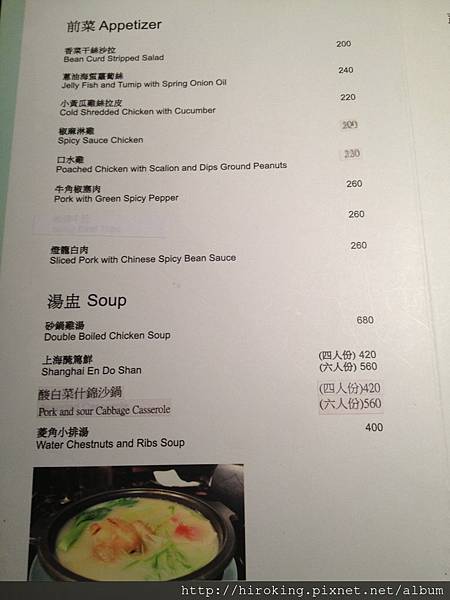 菜單Menu,價格與另外一間以上海菜聞名的「高記上海料理餐廳」相仿,不是平易近人的價位