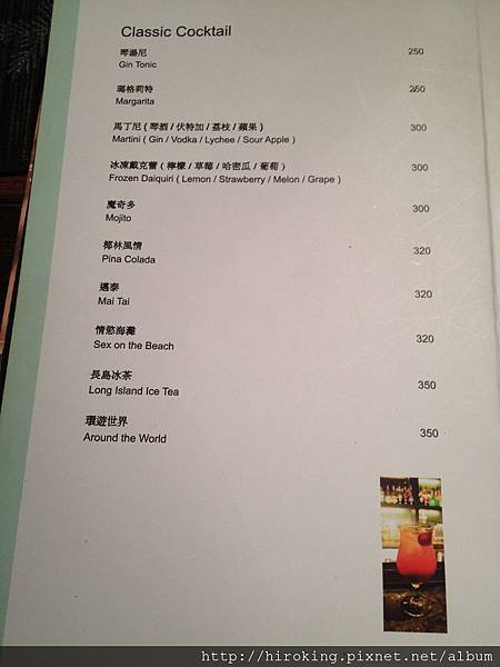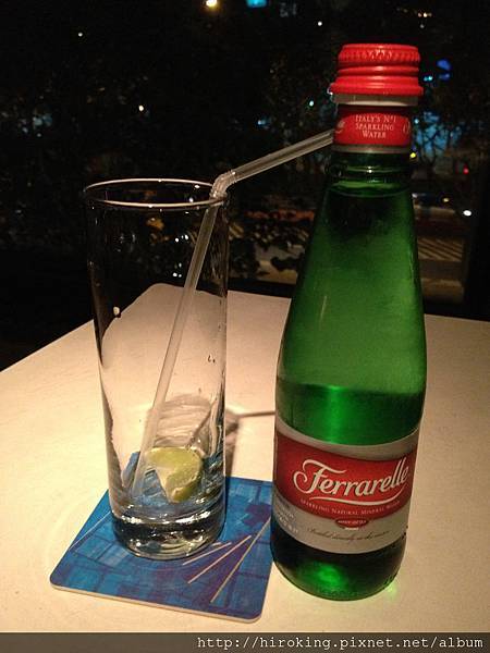 我們簡單點了兩杯調酒(下面這杯是顛覆墨西哥,另外一杯是長島冰茶)+一瓶氣泡水+一瓶義大利礦泉水,畢竟開車不喝酒,尊重別人也重視自己的生命!