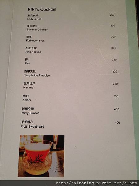 本次用餐心得:來FiFi我覺得吃得不單單只是名氣,料理精緻用心也是貨真價實,也許價格不親民,但換個角度想,能有一個這麼棒的地方可以用餐,多掏點錢出來也是值得的!服務生的素質也都很好,縱使都是帥哥正妹,也都能微笑以待 ; 不過小缺點還是得要講一下,我們在2樓用餐的桌子,其實是黏黏的,感覺沒有清潔完全,人多時難免會有所小缺失,可是週一晚上用餐的沒幾桌,這不知道是不是失誤? 3樓的Lounge Bar氣氛很好,可以非常舒服大肆喝酒聊天抽煙,酒類的價格中等偏高,如果酒精濃度可以再高一點,或許可以High的更快,整體而言這是一間集合時尚與享樂美學的好餐廳,我絕對是會再造訪。