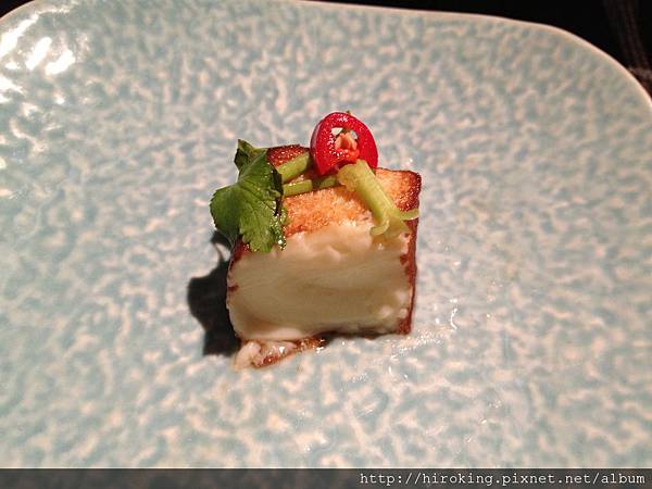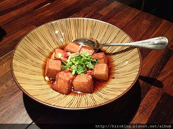 近拍就可以看出特殊之處,雞蛋豆腐切成方塊狀後將表皮煎到微焦,一口咬下內裡滑嫩,配上就醬油佐其他香料調味,色香味準確,可稱得上這餐廳的榮光!