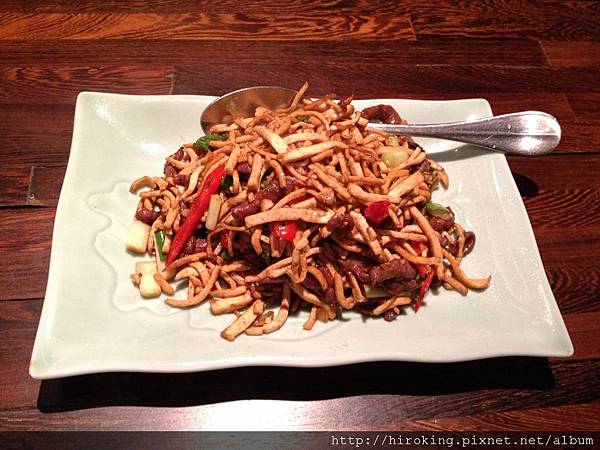 服務生推薦的「香干牛肉絲」,將豆干切絲後與牛肉混進辣椒蔥拌炒,吃起來口感軟嫩,味道微辣,不到必點程度