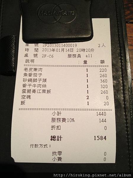 這次我們兩個人點了四道菜+一道菜飯+一碗白飯,很撐很飽很滿足,消費總額共1584元,其實這份量應該是夠三個人吃的!