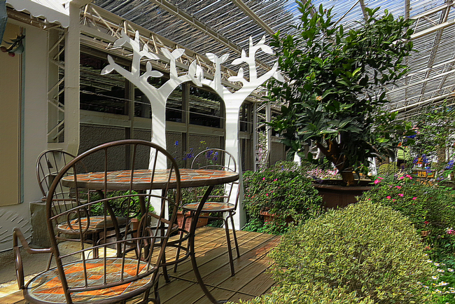 今年新建的「茶花景觀溫室」,以南法風情展示茶花及各類花卉,有如置身在普羅旺斯莊園。