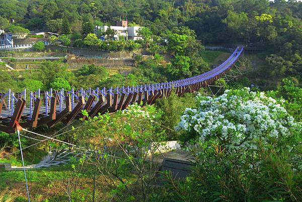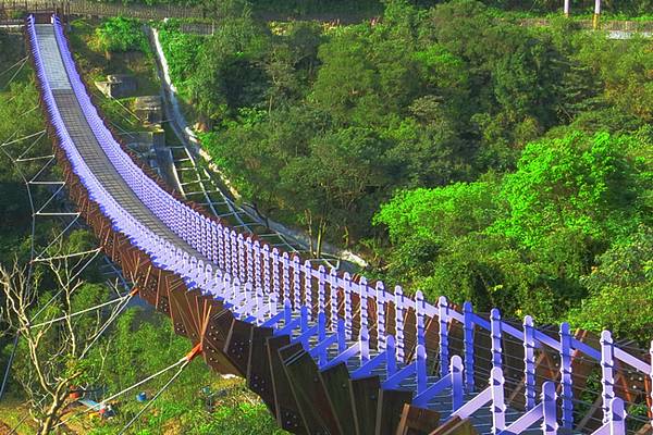 116公尺的白石湖吊橋,猶如龍骨階梯,優雅的橫跨山間,帶我們走入桃源仙境。