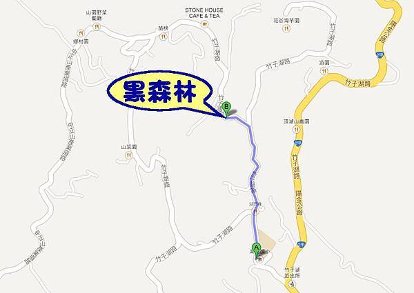 經過湖田國小後,往前直走~看到叉路後往左轉往前約200公尺黑森林入口就在左邊!!
