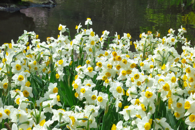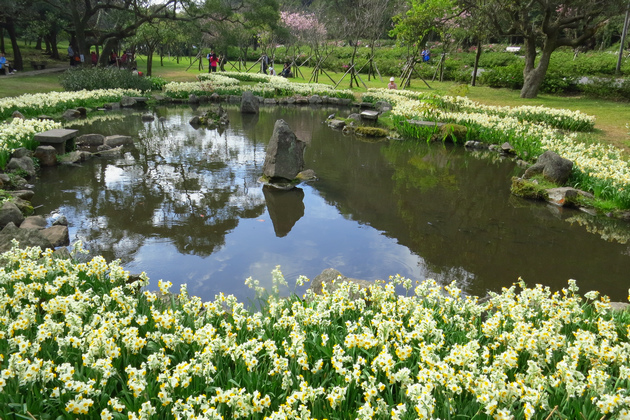 遊人關注的焦點幾乎都放在腳邊的水仙們,