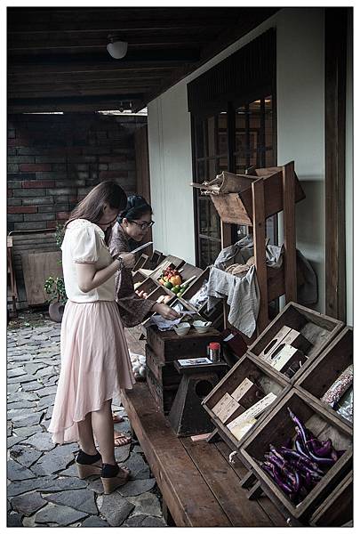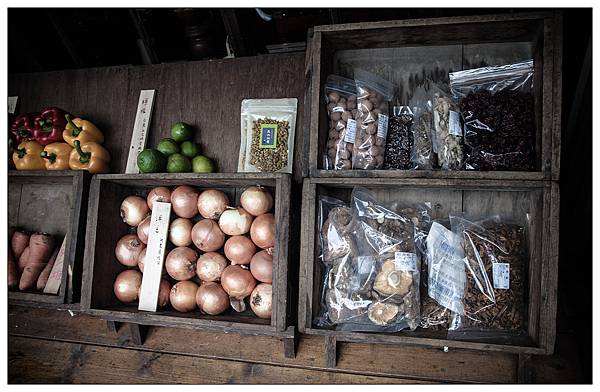 蔬果刻意用深色木箱整齊成列