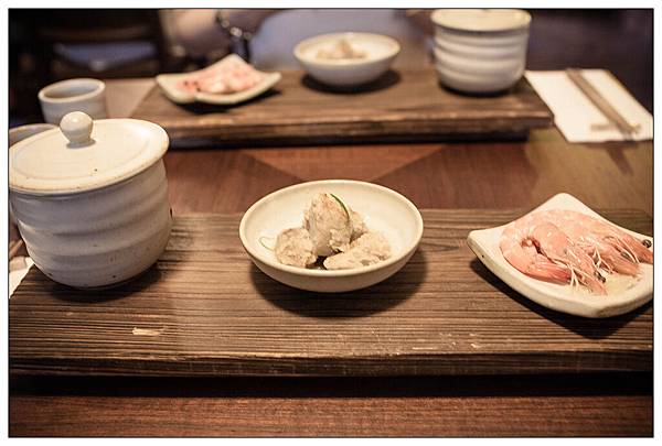 前菜是固定的清灼白蝦 烏金里芋 原鄉樹豆肚片湯