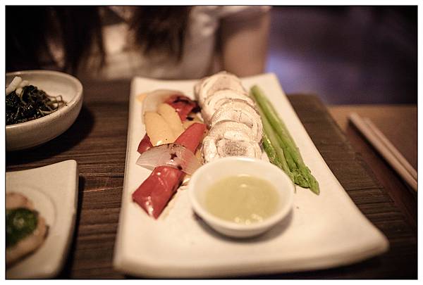 栗點的主餐是田園的夏天: 粉肝醬雞卷佐奇異果醬 青蘆筍 烤甜椒