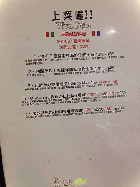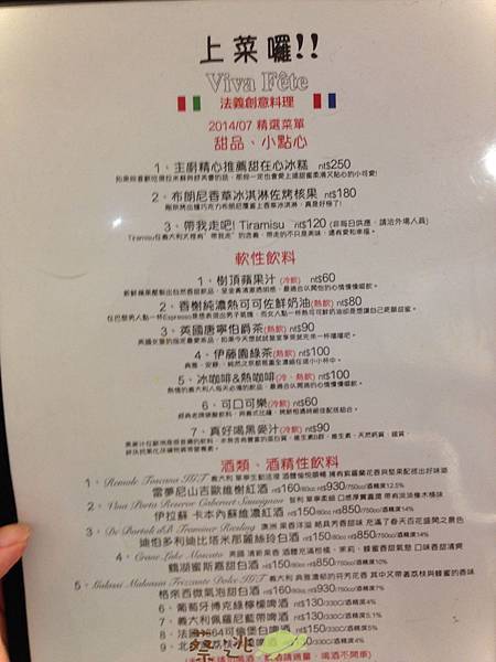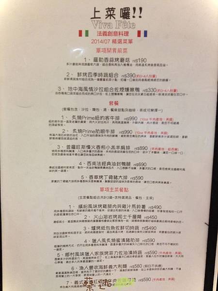 以下提供拍得很爛的菜單給大家參考一下囉~