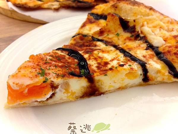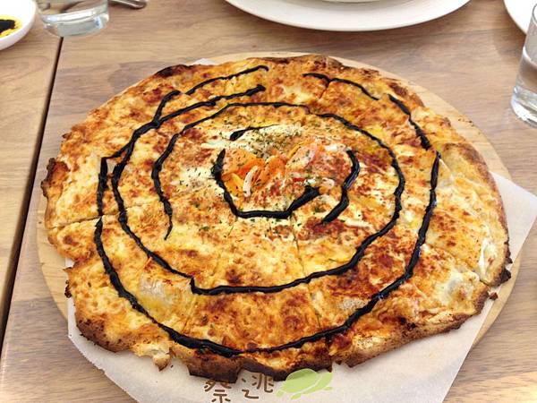 「翹鬍子起士佐陳年醋蜜薄脆pizza」 ~~~~ 這個名子也太俏皮了吧…不看到本人真的很難想像這是什麼pizza
