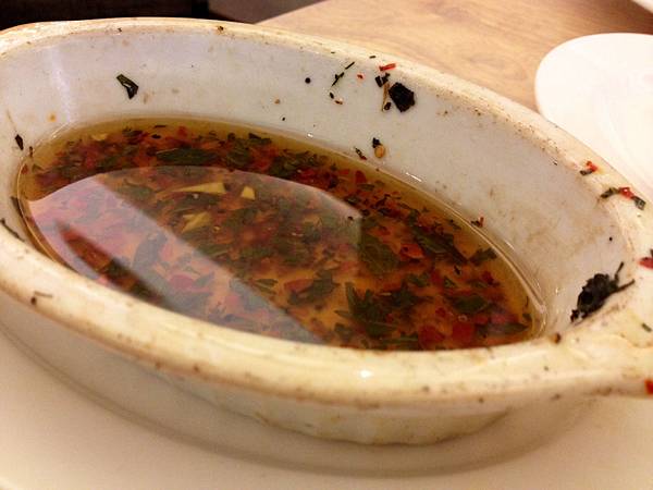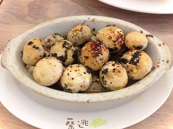 蘑菇也烤得剛剛好,又脆又多汁,我還一直沾底下的醬來吃,吃光光後一問才知道,那全部都是橄欖油耶!!