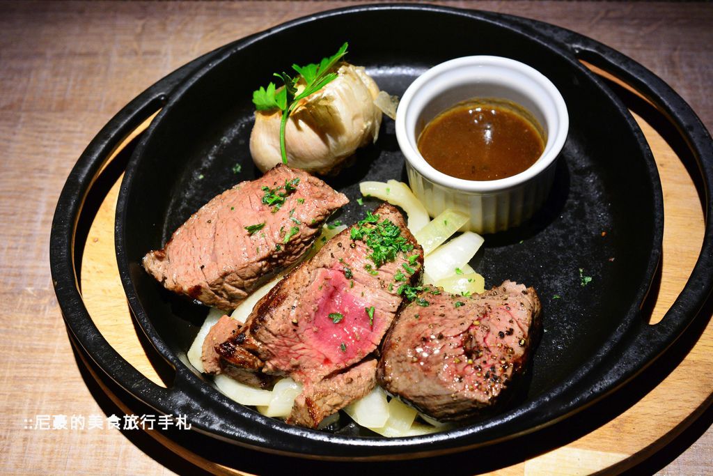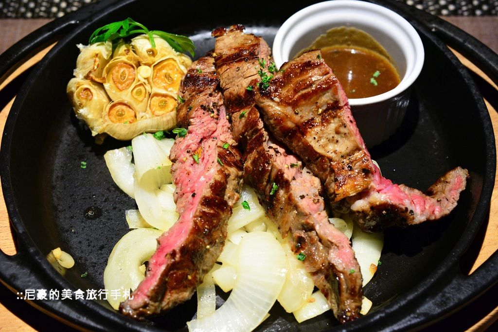餐廳的建議是五分熟,底下有墊上洋蔥避免因為鐵盤溫度過高