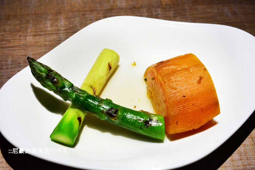 今天的副餐是燻烤澳洲大蘆筍以及桂花釀地瓜