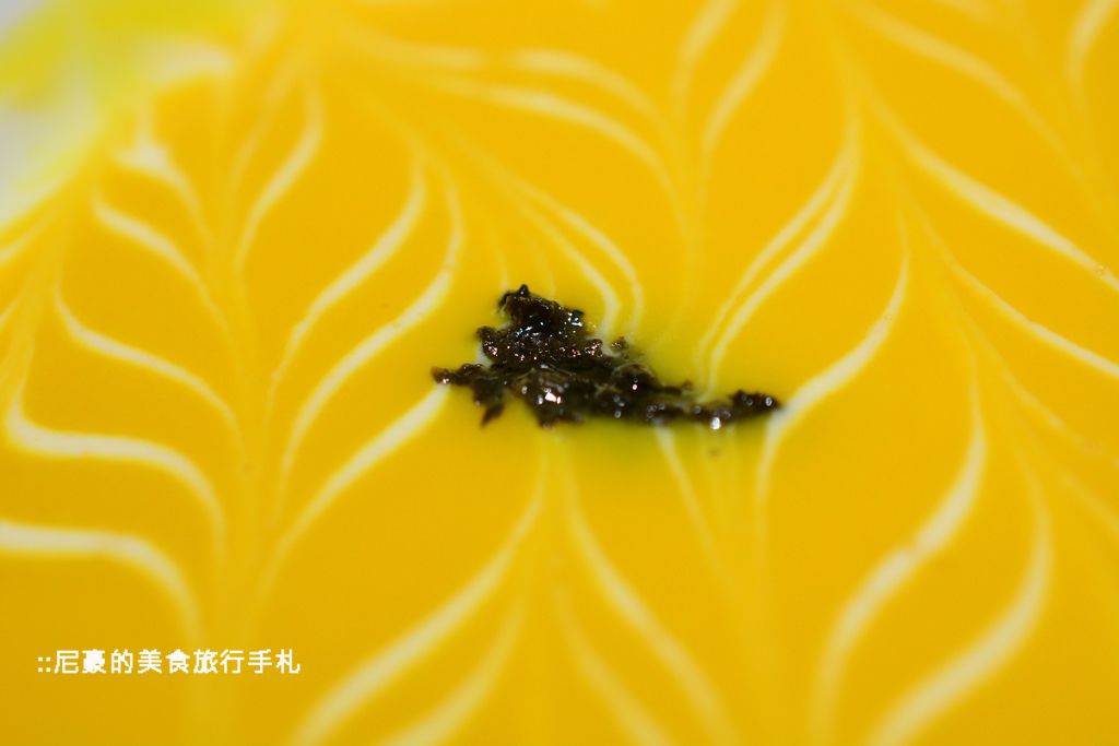 ▲一送上來就很好奇這是什麼,送進嘴中咬破後