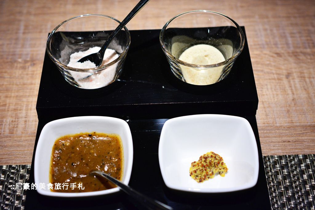 ▲接著就是今晚的主角牛排囉,首先服務人員先送上醬料跟鹽