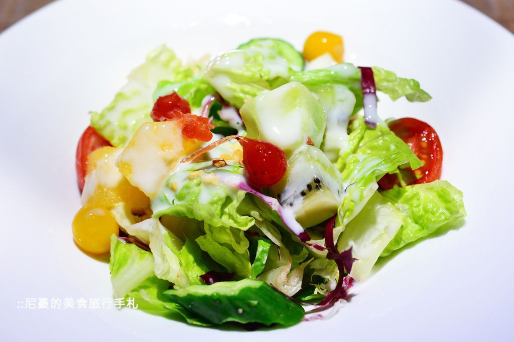 吃起來的甜度整個大勝,醬料的部分則是有點類似油醋醬,個人還滿愛的