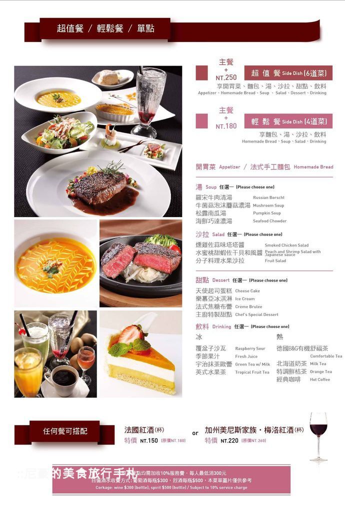如果覺得這樣太多了,也可以加180有麵包、沙拉、湯品、飲料,相當超值