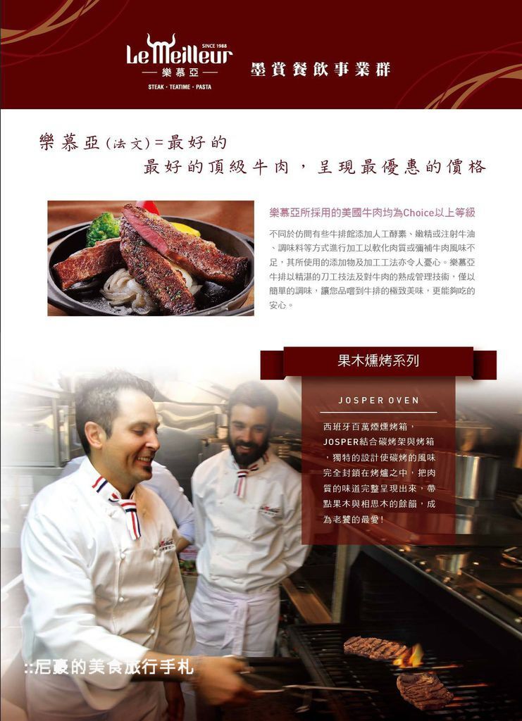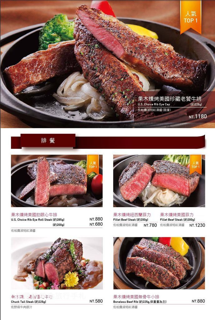 經服務人員介紹他們家招牌是果木燻烤美國珍藏老饕牛排,當然要點一下