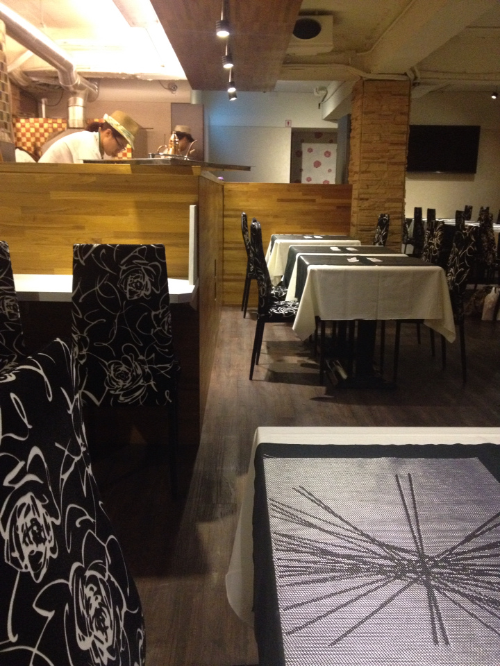 Milano Pizzeria用餐環境很安靜、舒服,座位中間就是燒窯與吧檯,雖然我跟這一帶很不熟、從外觀也看不出來二樓有這樣一個用餐環境。