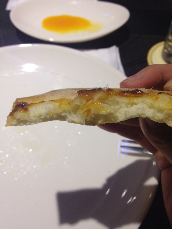 店家很貼心的提醒比目魚鰭邊肉會有比較重的脂肪味道,以免有些客戶會排斥。 我也喜歡鮭魚卵,在嘴巴裡面波波波的像小煙火:D 濕潤的海鮮加上帕米吉亞諾乾酪形成不同的口感層次,感覺是有花心思設計過的一道料理。