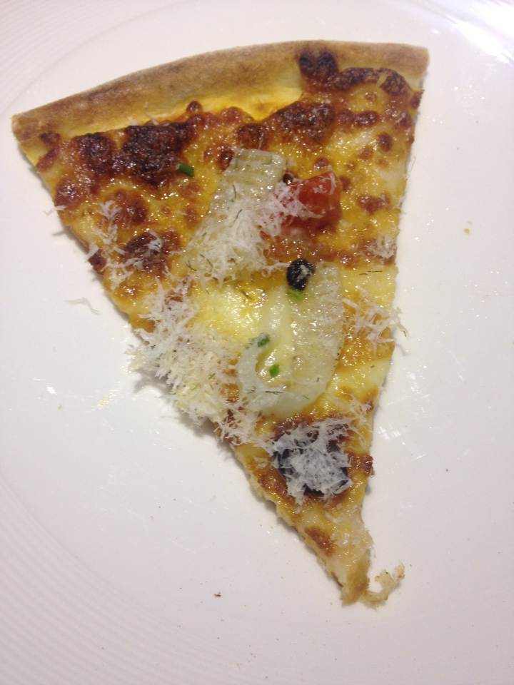 我覺得Milano Pizzeria的pizza有種慎重、精緻的形象,打破義式pizza向來給我一種topping都是亂丟亂撒上去的感覺XD 如果你跟我們一樣鹹甜都有點又都沒吃完,建議甜的那一個拚死拚活都要吃進去XD 鹹pizza的口感帶回家後也許不怎麼會變,但甜pizza因為如前面所說餡料是冰的、餅皮是熱的,味道一樣、口感卻不容易再營造回來,為了不讓口感變調,建議盡快把她吃完囉!