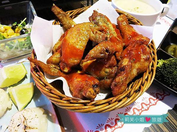 裝到滿出來的水牛城辣雞翅,一上桌就跟牛排互相爭寵,散發香辣的味道,光看菜名以為全部都是雞翅,想不到裡頭居然還有棒棒腿,嫩Q的肉質搭配辣醬的口味,好吃到吮指的地步!