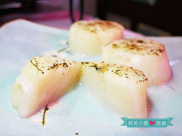 香煎到七分熟的干貝,只要擠上檸檬汁、加點鹽巴提味,就很美味!很喜歡這種以新鮮干貝簡單調味,不添加太多影響口味讓人吃不出干貝的鮮美。