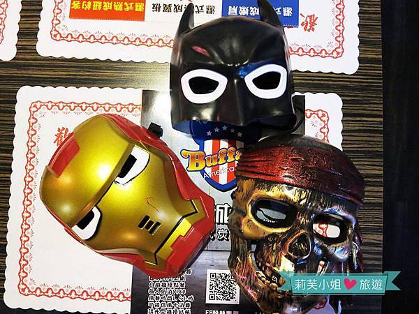 本日的餐點簡直就是肉慾橫流,尤其是這份澳洲濕式熟成肋眼牛排 50oz +炭烤烤雞腿排,完全就是豐盛到讓人流淚啊!寫文章的時候看到餐廳的FB訊息,點這份餐點還有送鹽烤海大蝦,完全就是一直誘惑人上門光顧!歡樂時刻來水牛城美式炭烤牛排餐廳聚餐、慶生或是慶祝,以划算的價格吃得飽又吃得好,餐廳還提供各種面具,營造開心的氣氛!(萬聖節好適合來這邊喔!還不需要準備道具XD)