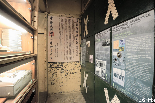 兩層樓展示空間,一樓保留昔日的金庫原貌。走在密閉狹窄的走道,也走進了歷史脈絡。
