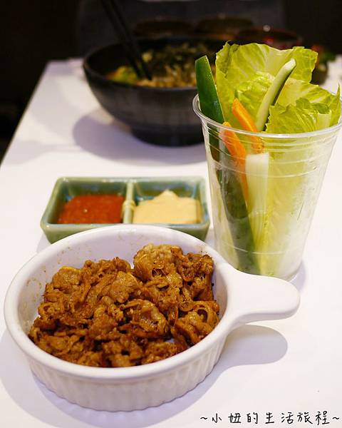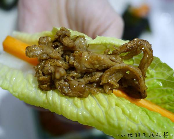 旁邊的兩種醬汁分別是歐巴醬和千島醬,歐巴醬是沾牛肉的,千島醬是沾蔬菜的,把牛肉和蔬菜包起來,牛肉香味濃厚、加上健康的蔬菜,吃起來特別清爽。