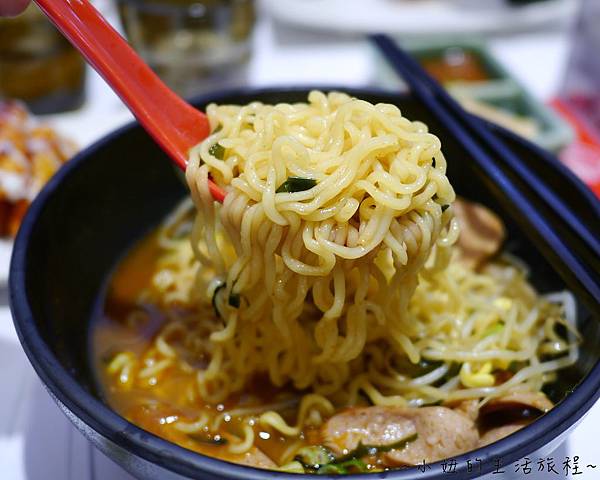 這麵條非常Q彈,妞媽很喜歡,湯頭也非常濃郁,喝前三口湯時,都覺得香辣過癮,但喝第四口湯後,就覺得這辣味太鮮明了!因為辣味會堆疊上去,所以越吃越辣,鼻水也開始流出來,因為來自韓國正宗的口味,所以味道真的很辣,除非是平常吃大辣的朋友來吃會比較適合,如果平常是吃小辣的朋友,建議還是點不辣的口味