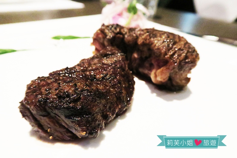 這邊要說一下,花園廚房的服務生將餐點上送桌時,並沒有提供任何大蒜片、玫瑰鹽、鹽之花等常見的牛肉佐料,也沒有解釋牛肉已有稍作調味,如果需要增加調味再跟他們索取等,只是將餐點放下,臨走前說了一下餐點的名稱。