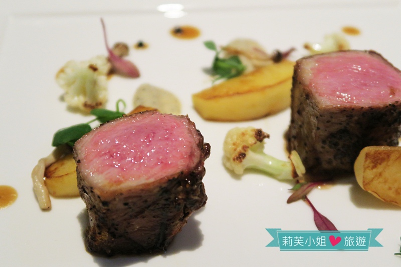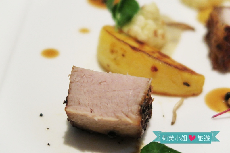後來,請服務生來了解一下餐點,中間歷經兩位服務生的幫忙,最後主廚重作了兩小塊七分熟的伊比利豬里肌,正面其實算五、六分熟,底層才是七分熟。口感確實比十一分熟嫩多了,不過卻沒有讓人驚艷不已的感受。明明我在西班牙吃到的伊比利豬肉真的是好吃到不行。