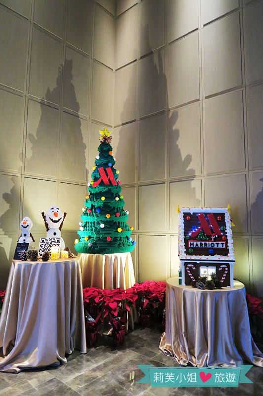 一旁的聖誕節裝置則顯得不是很大氣,或許是要有別於其他五星級飯店的奢華擺設,選用可重複使用的樂高積木造景。