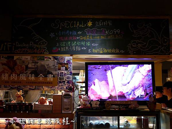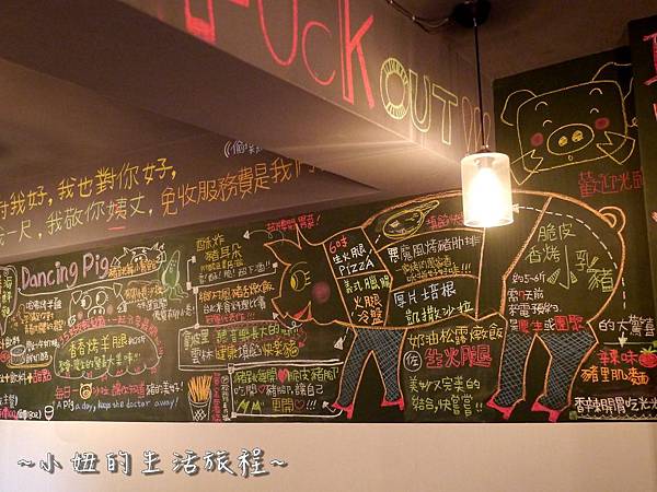 豬跳舞小餐館是個狹長形的空間,以自家板畫字樣和符合餐館主題的擺設,沒有過多的裝潢,但是食物的品質和烹飪手法很厲害!!