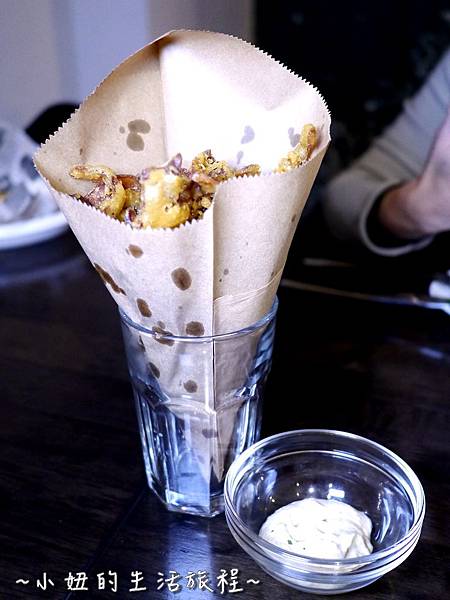 可以沾上隨付的酸豆美奶滋,沒想到豬耳朵可以這麼好吃,再來一瓶啤酒或氣泡酒,更增添酥炸豬耳朵的美味。