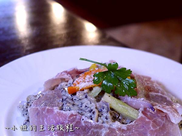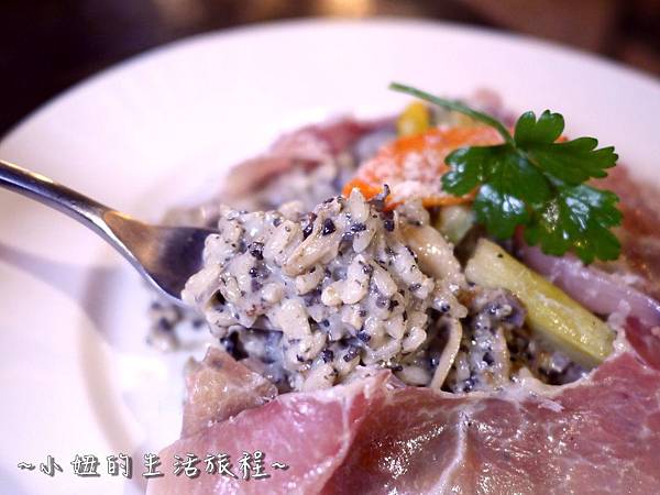 松露燉飯佐義大利生火腿,一上桌松露和生火腿的香氣撲鼻而來