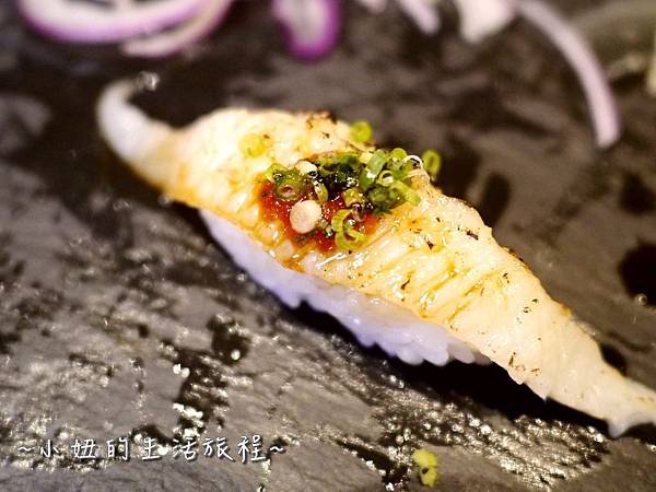 炙燒比目魚,這是道妞媽很愛的壽司,透過炙燒讓魚表皮的香氣溢出,油脂豐富,入口即化