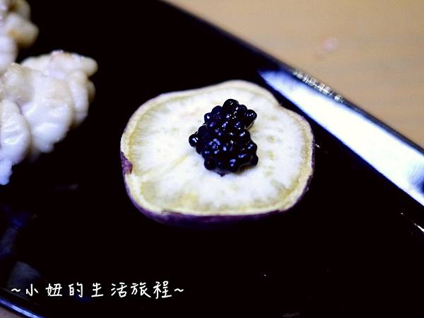 日本鱈魚白子、金石地瓜上頭鑲上些許魚子醬 ,師父說鱈魚白子是冬天才有的食材