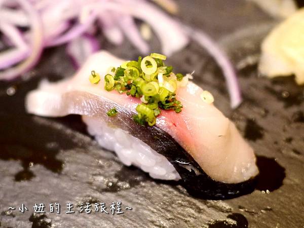 日本新鮮鯖魚壽司,上面圓圓的是日本的薑,味道內斂不嗆, 很少有機會吃到鯖魚壽司,有點出乎意料的美味