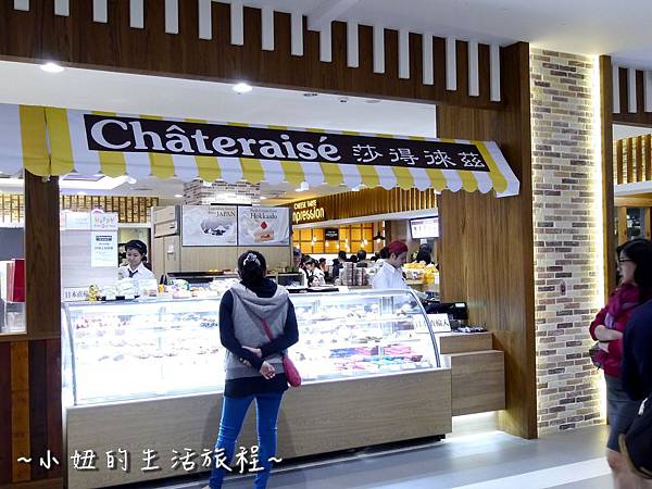 妞媽很幸運,來的時間點人雖不少、但不會太壅擠,要到B1吃甜點,只要在一樓走到誠品書局前方的手扶梯下去就到了妞媽要插旗的第一間店_sweets莎得徠茲(Chateraise),如果打算來用正餐&吃甜點,會建議可以先往B1的甜點區先排隊,因為甜點區很多店都有限量!! 也就是說,都有提前賣完的風險,可以先買完甜點後,再去2樓用正餐